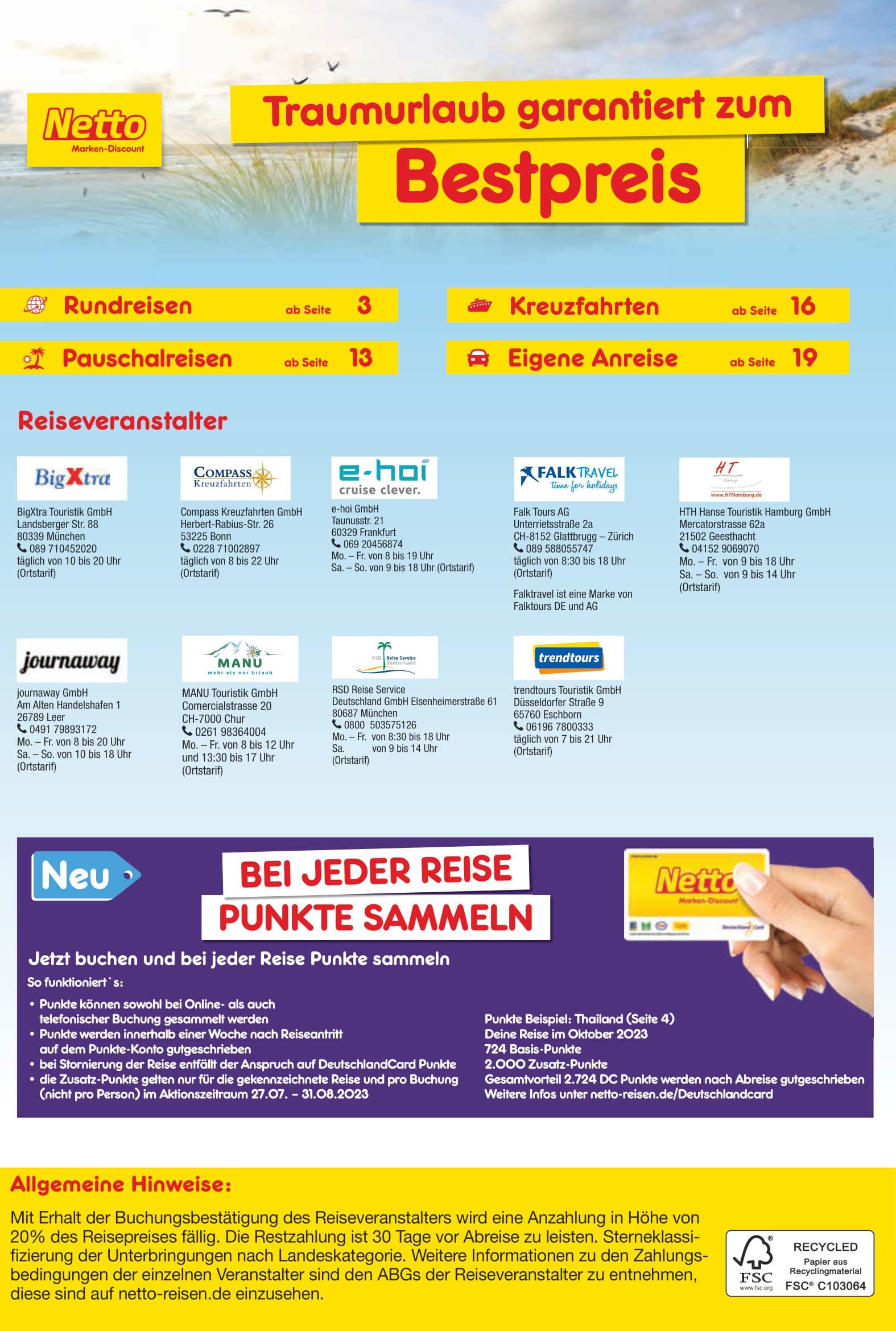 Die aktuellen Netto Reisen Prospekte. Alle Angebote in den Prospekten dieser Woche anzeigen von dem Netto Reisen. Last Minute Urlaub.
